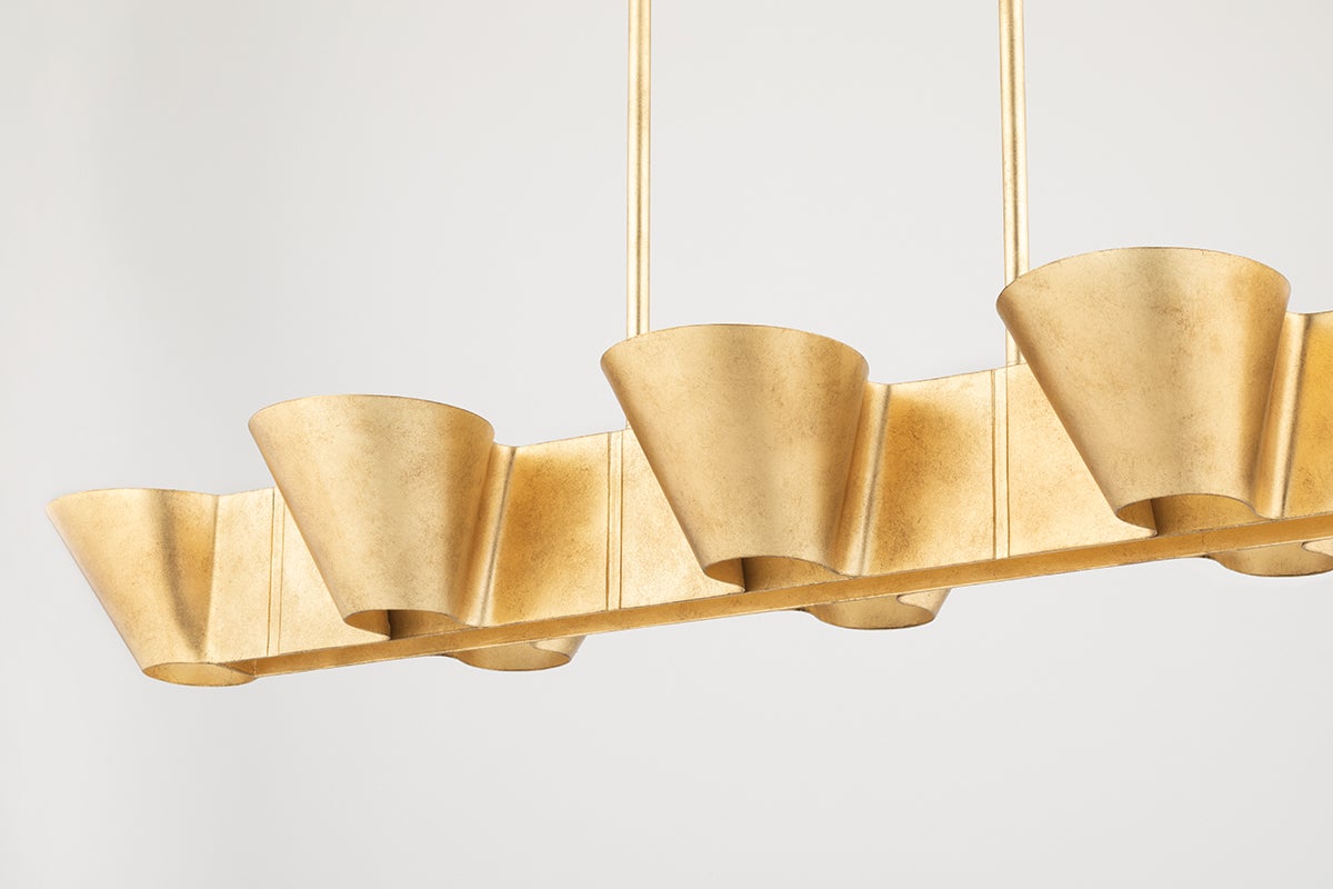 The Reeve chandelier by Hudson Valley Lighting in Vintage Gold Leaf (VGL) offers an elegant lighting solution for your space. Featuring eight E26 medium base sockets, it accommodates a maximum wattage of 40W per bulb (bulbs not included). With a diameter of 15.50 inches and a height of 9.00 inches, this chandelier effortlessly blends style and functionality. Its length of 52.00 inches makes it ideal for dining areas or living rooms. This fixture is designed for damp environments, ensuring versatility in various settings.