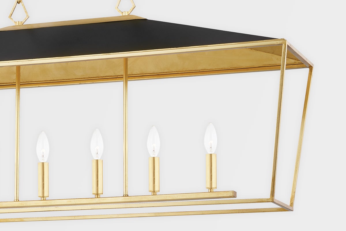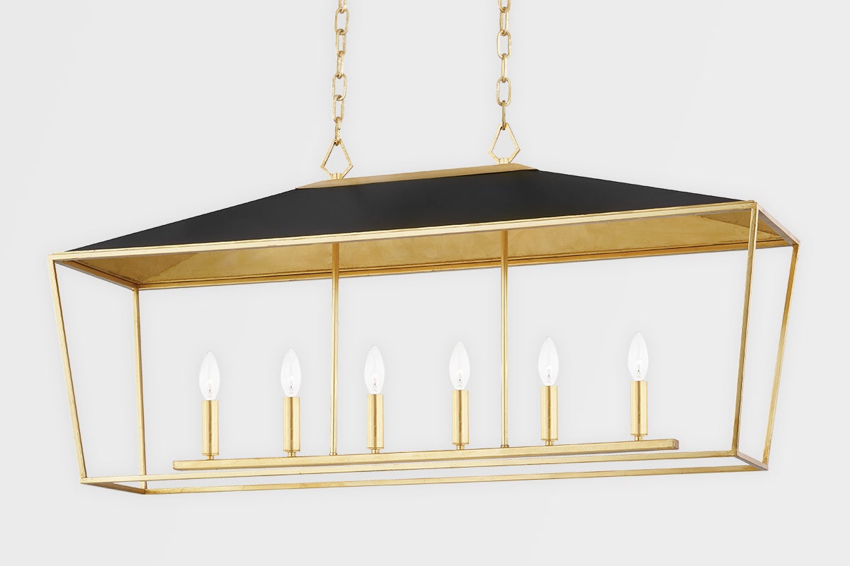 The Paxton Chandelier by Hudson Valley Lighting is a stunning lighting fixture that blends elegance and functionality. Featuring six E12 candelabra base bulbs (not included) with a maximum wattage of 60W each, this chandelier provides ample illumination while enhancing the beauty of any space. Measuring 13.00 inches in width, 23.25 inches in height, and 48.00 inches in length, it is designed for a dramatic statement. With its exquisite Gold Leaf and Black finish options, the Paxton Chandelier is UL Damp rated, making it suitable for various settings, including covered outdoor areas.