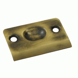 2 1/8 Inch Deltana Strike Plate (Antique Brass Finish) - The Deltana strike plate shown here is designed to be used for ball and roller catches. Measures 1 3/8 inches tall by 2 1/8 inches wide. Comes in a variety of finishes.