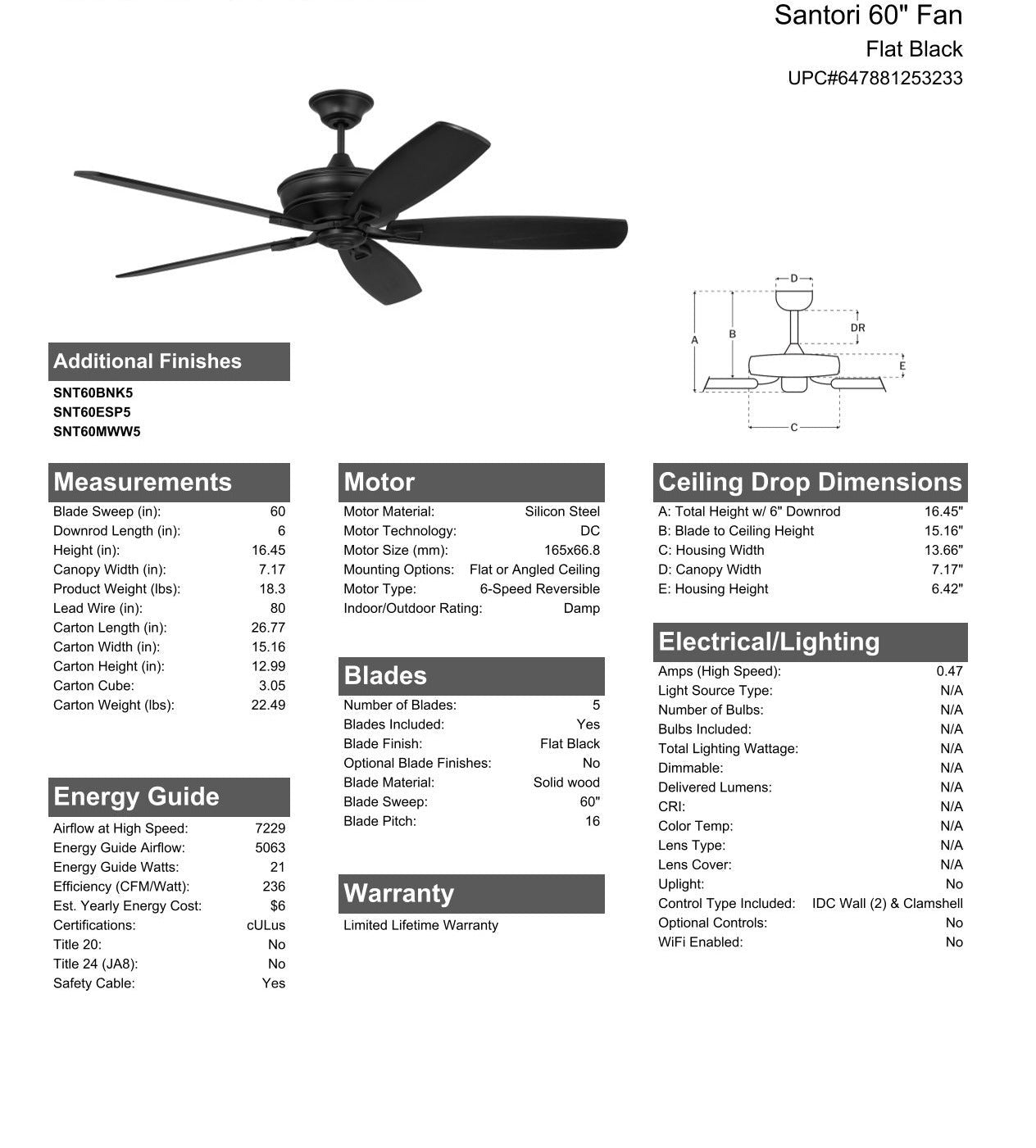 • Energy Guide 5063 CFM, High Speed 7229 CFM