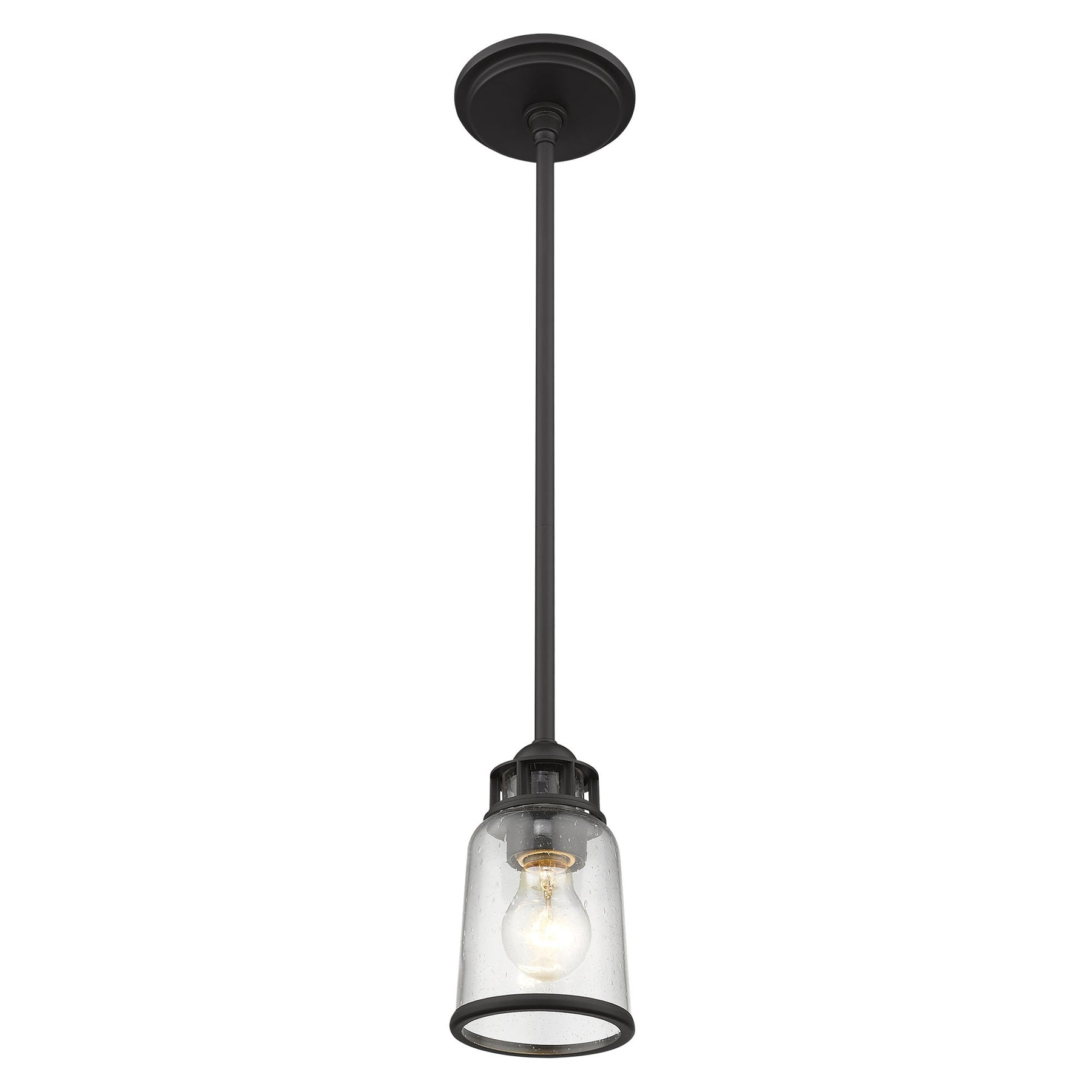 The Lawrenceville Mini Pendant in a classic bronze finish is a beautiful addition to any space, showcasing a retro industrial design reminiscent of 19th-century lighting. This pendant features a hand-blown clear seeded glass shade and measures 15 to 45 inches in height with a 5-inch diameter. It accommodates one medium base bulb with a maximum wattage of 100W (not included) and includes stem sections of 6, 12, and 18 inches for versatile installation. Designed for damp locations, it is suitable for various settings, including areas with humidity, while also accommodating sloped ceilings.