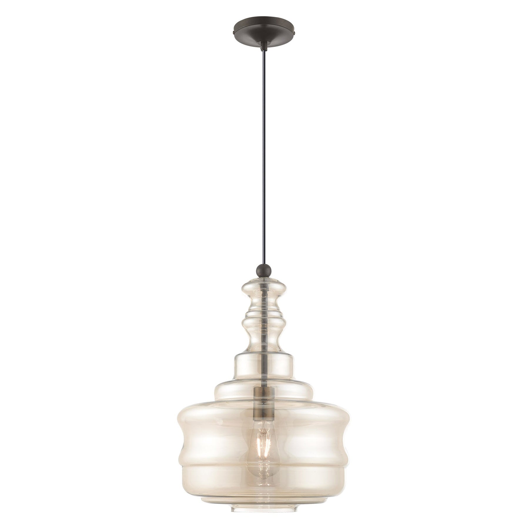 The 41225-92 Art Glass Mini Pendant is a stunning addition to any living space, showcasing a unique blend of traditional and modern styles. Crafted with exquisite hand-blown champagne glass and complemented by a rich English bronze finish, this fixture enhances your decor while providing a warm glow. With an adjustable height ranging from 19.25 inches to 90 inches and a diameter of 12.625 inches, it accommodates sloped ceilings seamlessly. Designed for use in damp locations, it requires a single medium base bulb (not included) with a maximum wattage of 60W, making it a versatile lighting solution for various settings.
