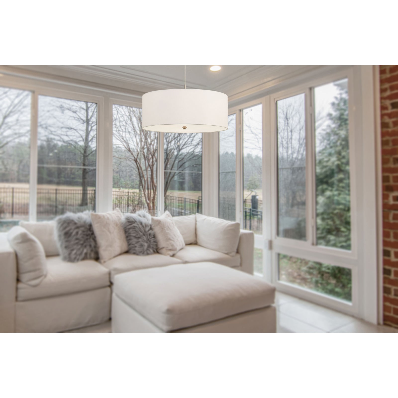 The FX-3629-3P Addison Drum Pendant Fixture is a stunning lighting piece that blends durability with elegance. Featuring a 24-inch diameter and a height of 12.25 inches, this fixture is constructed from durable metal and fabric, ensuring longevity. It requires three E26 base bulbs with a maximum wattage of 60W each (not included) and includes a diffuser to soften the light. The pendant comes with 6 feet of cord, making it versatile for various ceiling heights. Delivered in one carton, it is easy to install without the need for assembly. With a brushed steel base color, this fixture complements a range of decor styles and is backed by a one-year warranty, promising quality and craftsmanship.