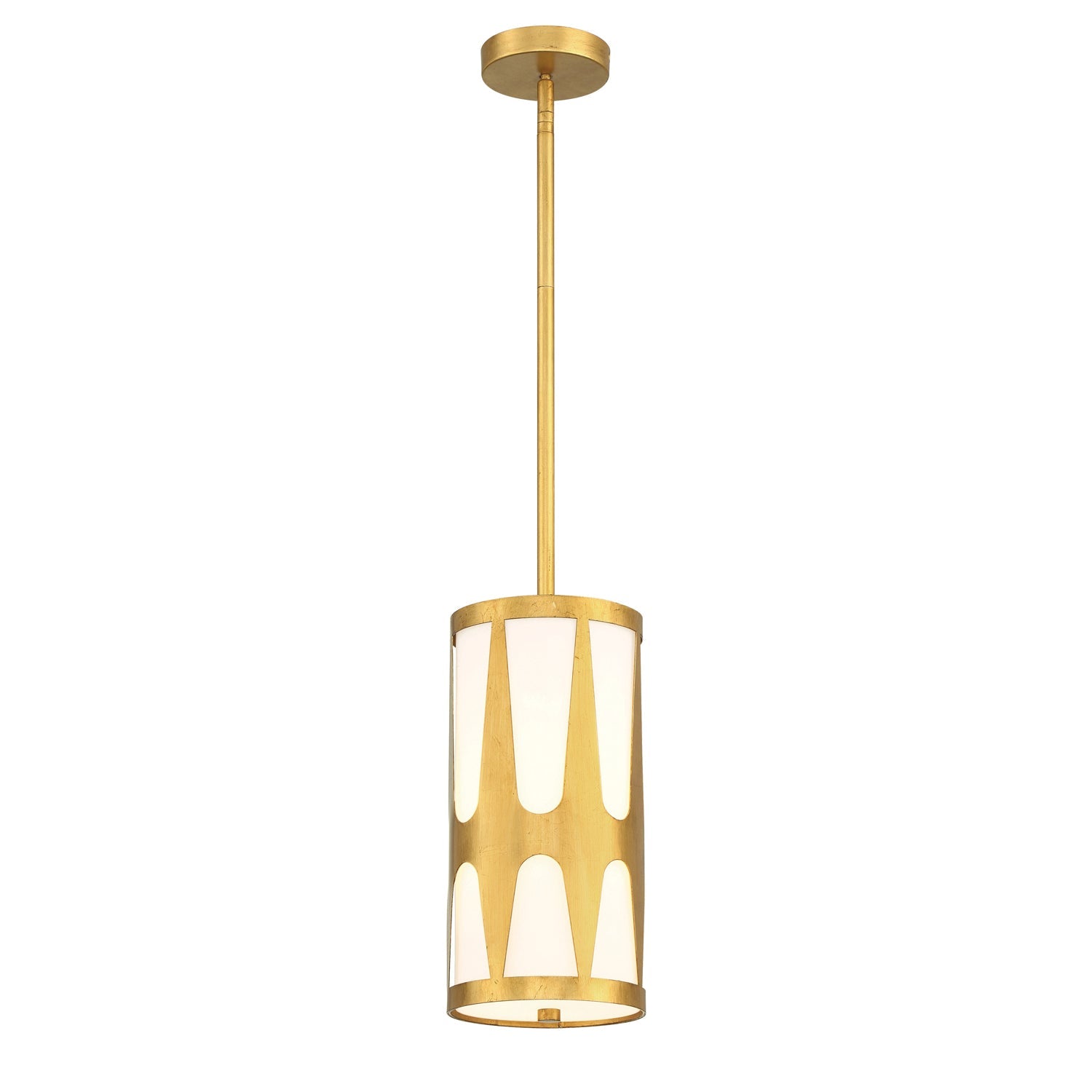 Elevate your space with the strikingly stylish Royston one-light pendant. This fixture showcases an artsy metal pattern overlay, creating an intriguing and eye-catching profile. The inner white glass shade adds a touch of texture, while the glass diffuser helps cast a soft and inviting illumination to its surroundings. Make a statement with the Royston pendant over a kitchen island and transform your space into a stunning showcase of sophistication.
