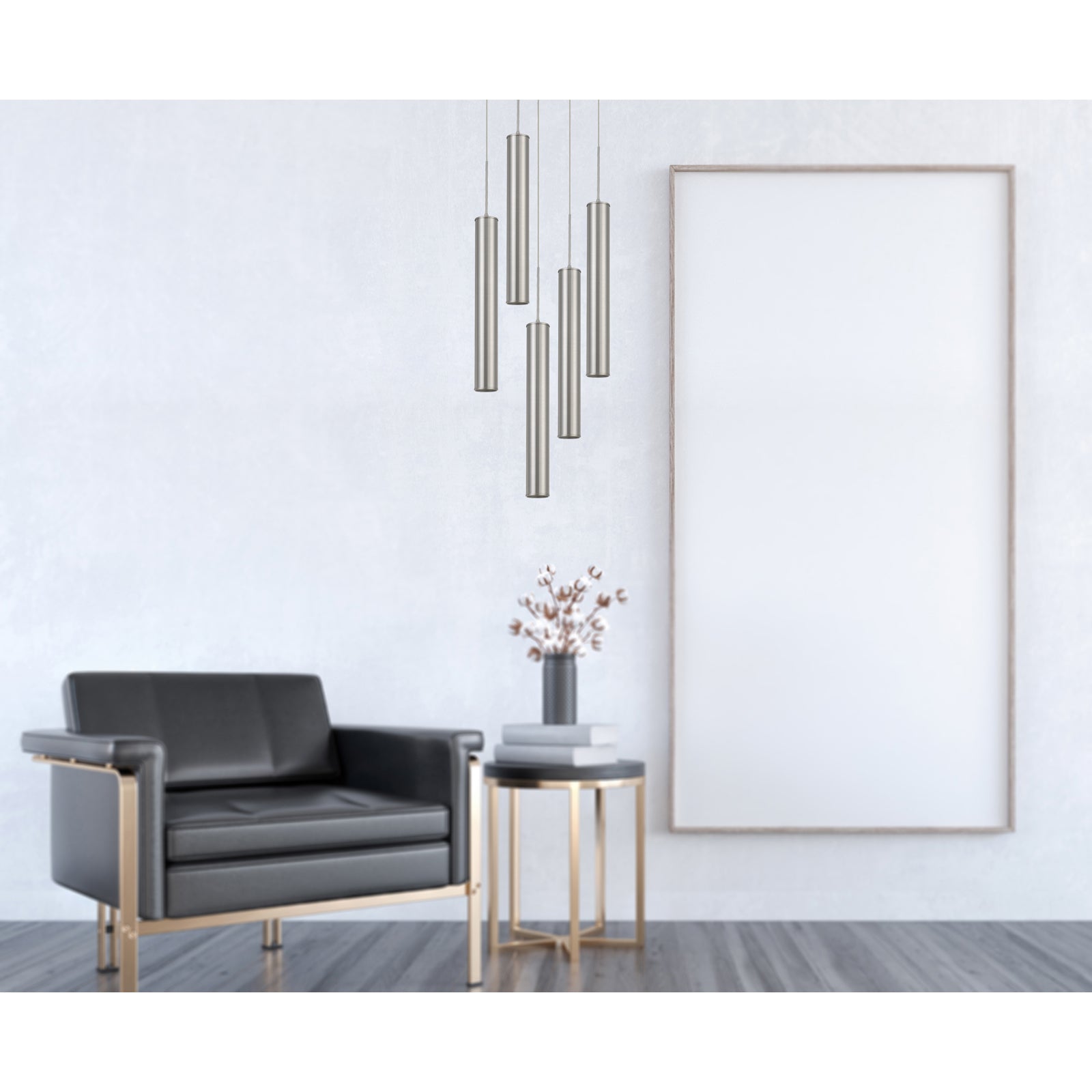 The Melini Integrated LED Pendant Fixture (Product No. UP-1116) is a sleek and modern lighting solution, featuring a durable metal construction and understated cylindrical design. This pendant fixture outputs 800 lumens with an energy-efficient 10W LED, boasting an 80 CRI for accurate color representation. With a generous 72\