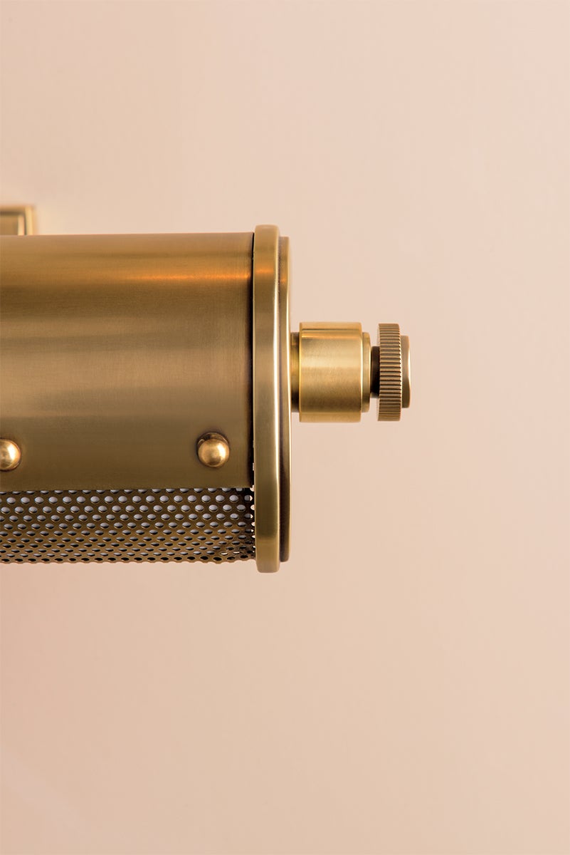 The Gaines Wall Sconce by Hudson Valley Lighting is a stunning addition for any contemporary space, featuring an elegant design available in multiple finishes: Aged Brass, Aged Old Bronze, and Historic Nickel. This sconce accommodates two E26 medium base bulbs (not included) with a maximum wattage of 60W each. It boasts dimensions of 18.25 inches in width, 3.25 inches in height, and an extension of 8.00 inches, with a top to center measurement of 1.75 inches. Rated for UL Damp locations, it is ideal for areas that may experience moisture.