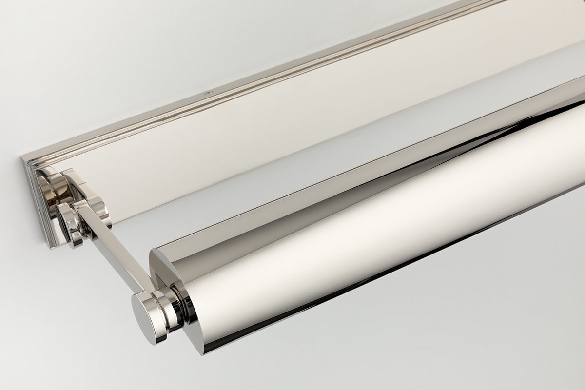 The Merrick Wall Sconce by Hudson Valley Lighting is a sophisticated addition to any space, featuring a width of 24.50 inches and a height of 3.50 inches. This stylish sconce accommodates three E26 medium base bulbs (not included), each with a maximum wattage of 60W, providing ample illumination. With an 8.75-inch extension and a top-to-center measurement of 1.75 inches, it delivers both form and function. Available in multiple finish options, including Aged Brass, Distressed Bronze, and Polished Nickel, this fixture is UL Damp rated, making it perfect for humid environments.