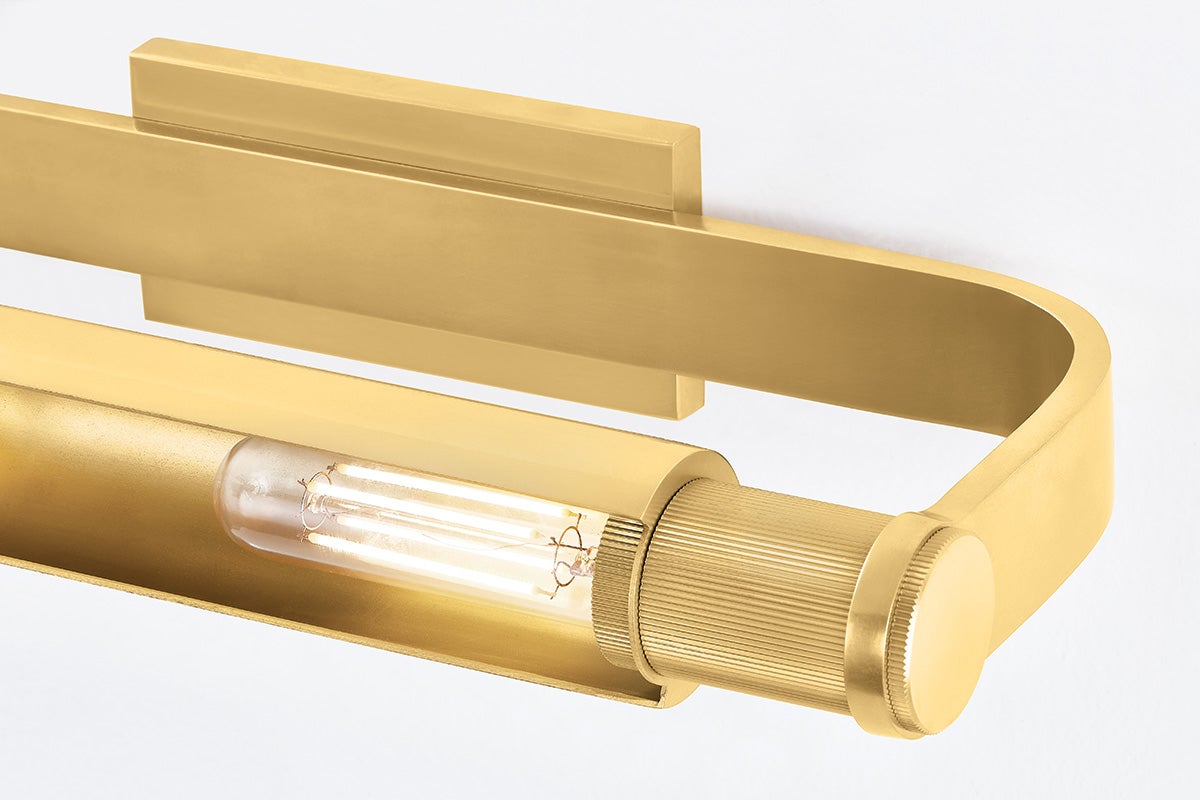 The Gem Box Wall Sconce from Hudson Valley Lighting combines elegant design with practical functionality. Measuring 18.00 inches in diameter and 3.00 inches in height, this sconce features an extension of 7.50 inches and a top-to-center measurement of 1.50 inches. It accommodates two E26 medium base bulbs with a maximum wattage of 15.00W each, making it a perfect choice for creating ambient lighting in any space. With a UL Damp rating, it's suitable for humid areas, while the available finish options in Aged Brass and Aged Brass/Distressed Bronze add a touch of sophistication.