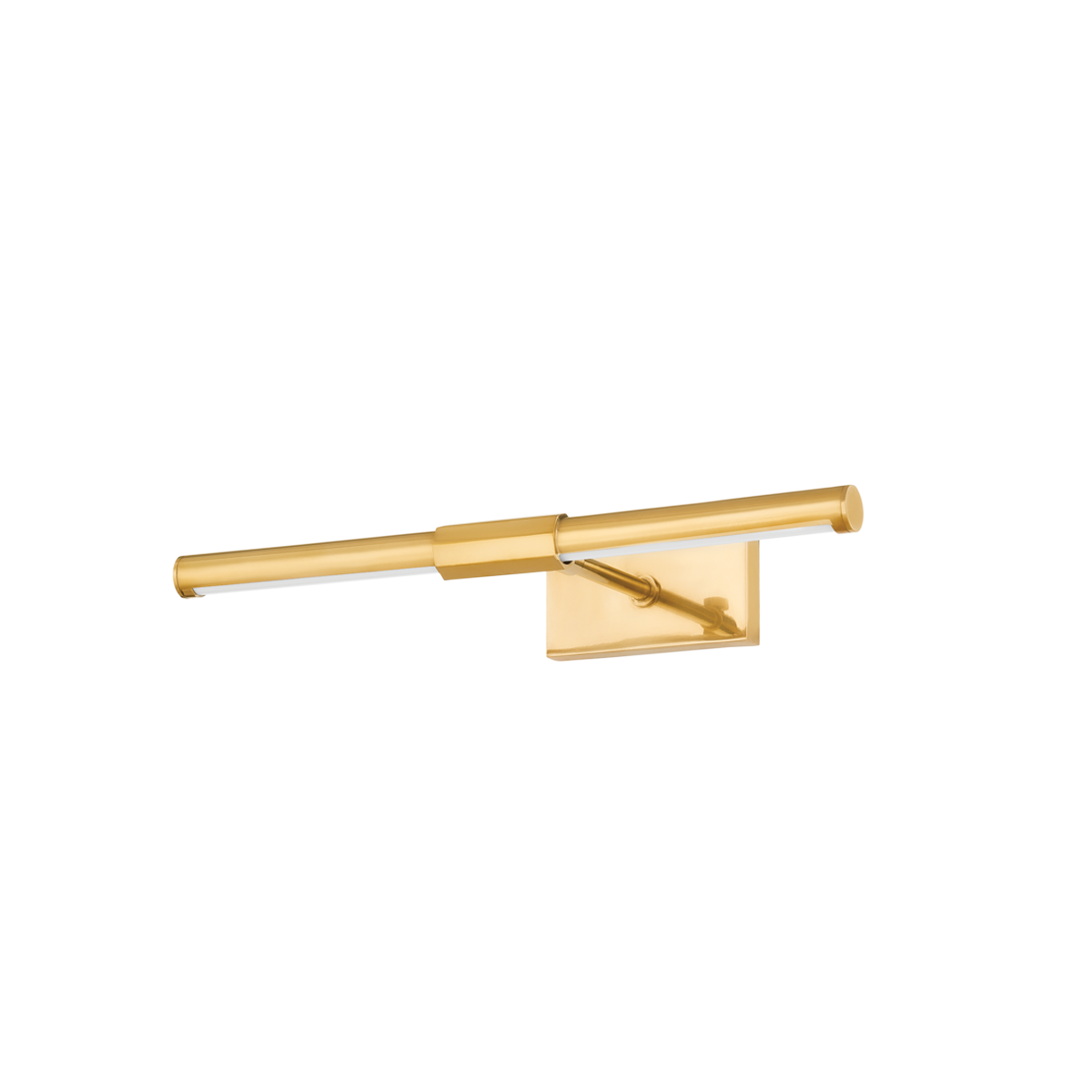 The Melbourne Wall Sconce by Hudson Valley Lighting features a sleek design with an elegant Aged Brass finish, making it a remarkable addition to any space. Measuring 16.00 inches in diameter and 2.75 inches in height, it has a 7.25-inch extension for ample lighting. This sconce boasts an integrated LED socket that requires no additional bulbs and delivers 300 lumens with a warm color temperature of 2700K. With a CRI of 90, it ensures accurate color representation. Field serviceable and ETL damp rated, it is suitable for both dry and humid locations, offering versatility for various environments.