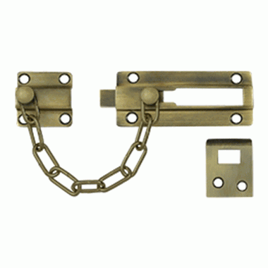 Door Guards, Security, Solid Brass Door Guard, Chain / Door Bolt in Antique Brass Finish - These solid brass door guards are ideal to improve security for doors allowing them to partially open. They are available in a variety of fine finishes.