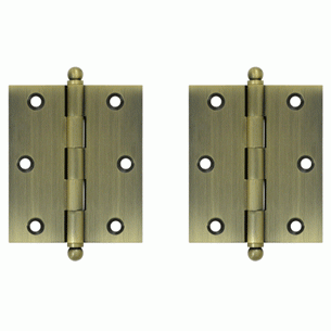 3 Inch x 2 1/2 Inch Solid Brass Cabinet Hinge (Antique Brass Finish) - This hinge measures 3 inches tall by 2 1/2 inches wide and comes standard with a ball tip. The hinge also comes complete with the mounting hardware.