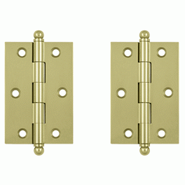 3 Inch x 2 Inch Solid Brass Cabinet Hinge (Unlacquered Brass Finish) - This hinge measures 3 inches tall by 2 inches wide and comes standard with a ball tip. The hinge also comes complete with the mounting hardware.