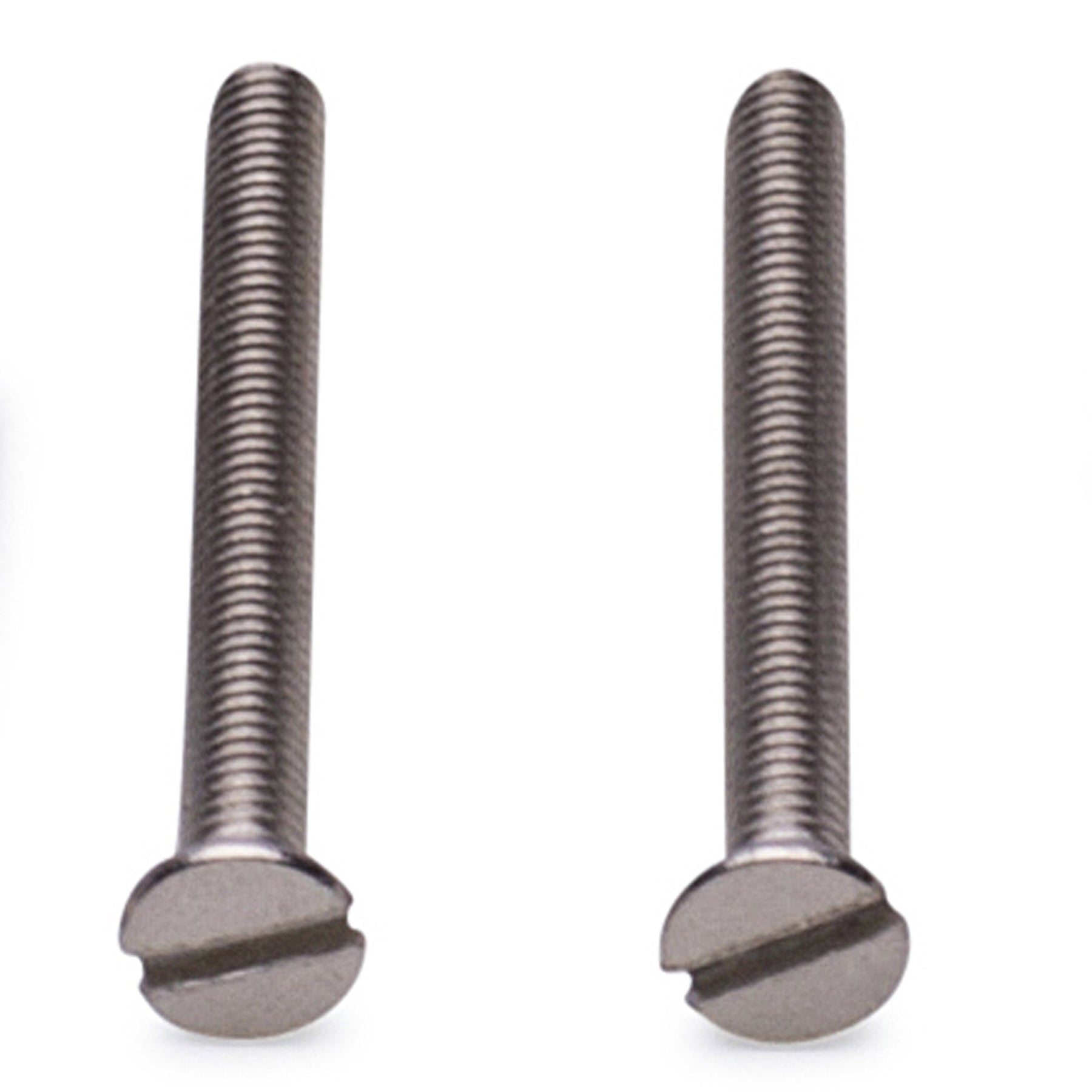 These rosette screws are made to fit a standard 1 3/8 inch door and they measure 40 mm long. They are sold by the pair. These are also available (as an option) in 50 mm long which would accommodate a 1 3/4 inch thick door. This particular product has a lead time of approximately 1 to 2 business days.