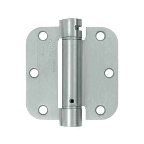 3 1/2 Inch x 3 1/2 Inch Steel Spring Hinge (5/8 Radius Corner, Brushed Chrome Finish) - Sold Individually - Measures 3 1/2 inches tall by 3 1/2 inches wide with 5/8 radius corners. Each hinge is self-closing and adjustable. Comes complete with mounting hardware.