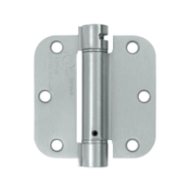 3 1/2 Inch x 3 1/2 Inch Steel Spring Hinge (5/8 Radius Corner, Brushed Chrome Finish)