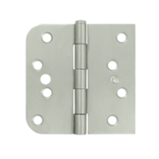 This set of hinges from Deltana features a unique pairing of square and 5/8 inch radius corners. Finished in a brushed coating. This hinge measures 4 inches tall by 4 inches wide and comes complete with stainless steel screws.