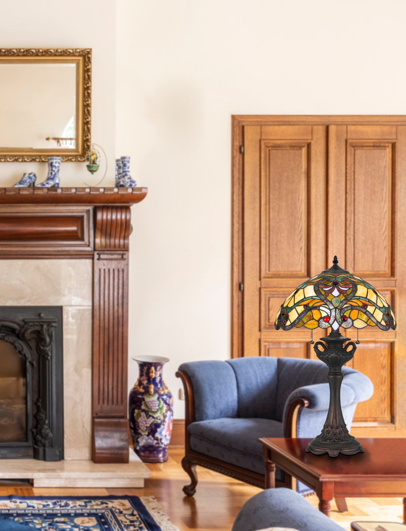 The BO-2796TB Tiffany Table Lamp combines functionality with artistry, featuring a stunning stained glass shade that beautifully complements its 25-inch height. With a durable resin construction, this lamp is designed for longevity and style. It requires two bulbs with E12 and E26 bases, each with a maximum wattage of 60W. The convenient pull chain switch adds to its user-friendly design. This lamp is packaged in one carton for easy shipping and typically ships within three business days. Enjoy peace of mind with a one-year warranty against defects in material and workmanship.