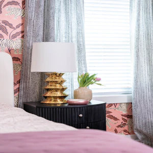 The Zoe Table Lamp by Mitzi is a sophisticated lighting piece that stands 25 inches tall and features a 12.5-inch wide linen shade in a crisp white finish. With a single E26 medium base socket, it accommodates a 75W A19 bulb (not included) for optimal illumination. The lamp is designed for dry environments and is elegantly finished in Aged Brass Ceramic Gold, making it a perfect complement to any decor.