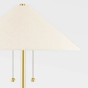 The Maia Floor Lamp by Mitzi is a sophisticated addition to any space, featuring a sleek design with an aged brass finish and textured beige shade. Standing at 67 inches tall and with a diameter of 23.50 inches, it elegantly combines style and functionality. This lamp accommodates two E26 medium base bulbs, each with a maximum wattage of 60W, providing ample light for various settings. Designed for convenience, it plugs in easily and is ideal for both modern and traditional decor.