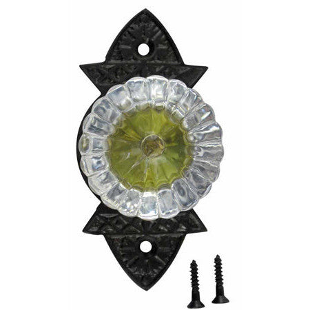 Crystal Swirl Knob Eastlake Backplate (Black Bronze) - the crystal knob measures 1 3/4 inches (44.5 mm) in diameter and have a projection of 1 1/4 inches (32 mm). The knob and backplate are separate pieces - the knob screws into the drawer from behind once the back plate is mounted.