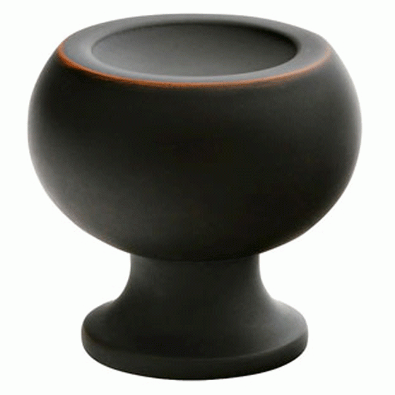 1 Inch Solid Brass Atomic Knob (Oil Rubbed Bronze Finish) - This cabinet knob features a modern look and is forged from solid brass. Measures 1 inches in diameter with a 1 inch dimension and projection. Comes complete with mounting hardware.