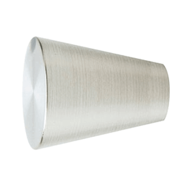 1 Inch Solid Brass Cone Knob (Brushed Nickel Finish) - This cabinet knob comes in an intricately designed cone shape and is constructed with solid brass. Measures 1 inch in diameter with a 1 1/8 inch projection. Comes complete with mounting hardware.