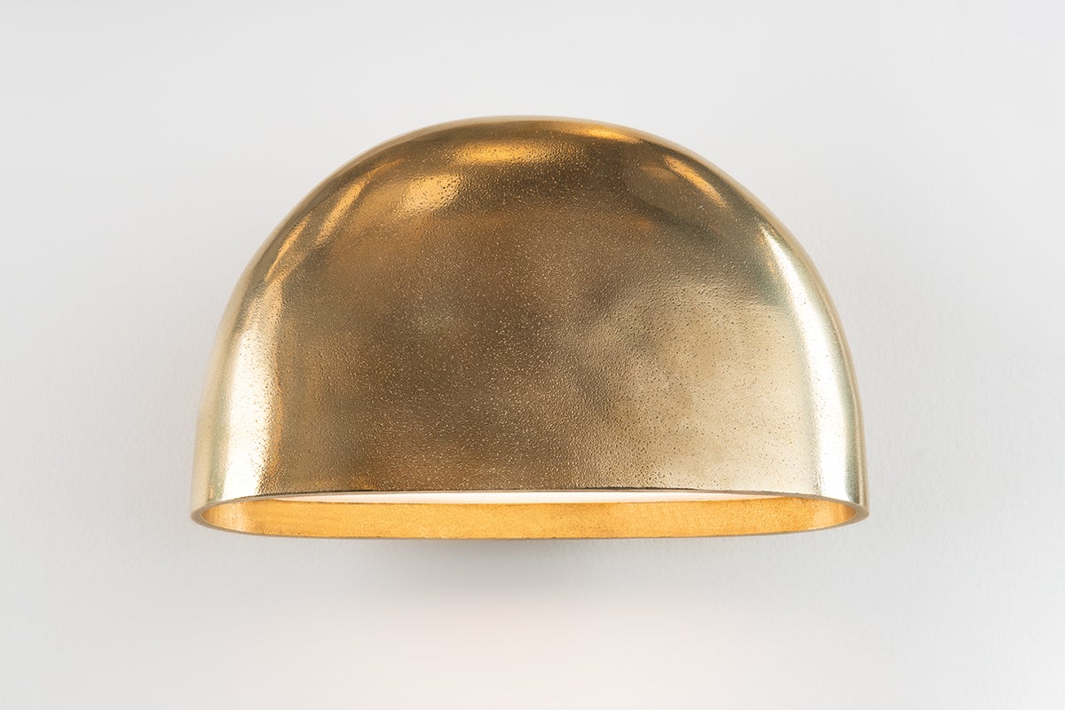 The Diggs Wall Sconce by Hudson Valley Lighting combines elegance and functionality in its sleek design. Measuring 8.25 inches in width and 5.25 inches in height, it features an extension of 3.50 inches and a top-to-center height of 2.50 inches. This sconce includes one integrated LED lamp with a wattage of 10.00, delivering a warm color temperature of 2700K and a high CRI of 90, resulting in 250 lumens of illumination. Available finishes include Aged Brass and Old Bronze. With its UL Damp rating, it is suitable for use in areas prone to moisture, while being field serviceable for your convenience.
