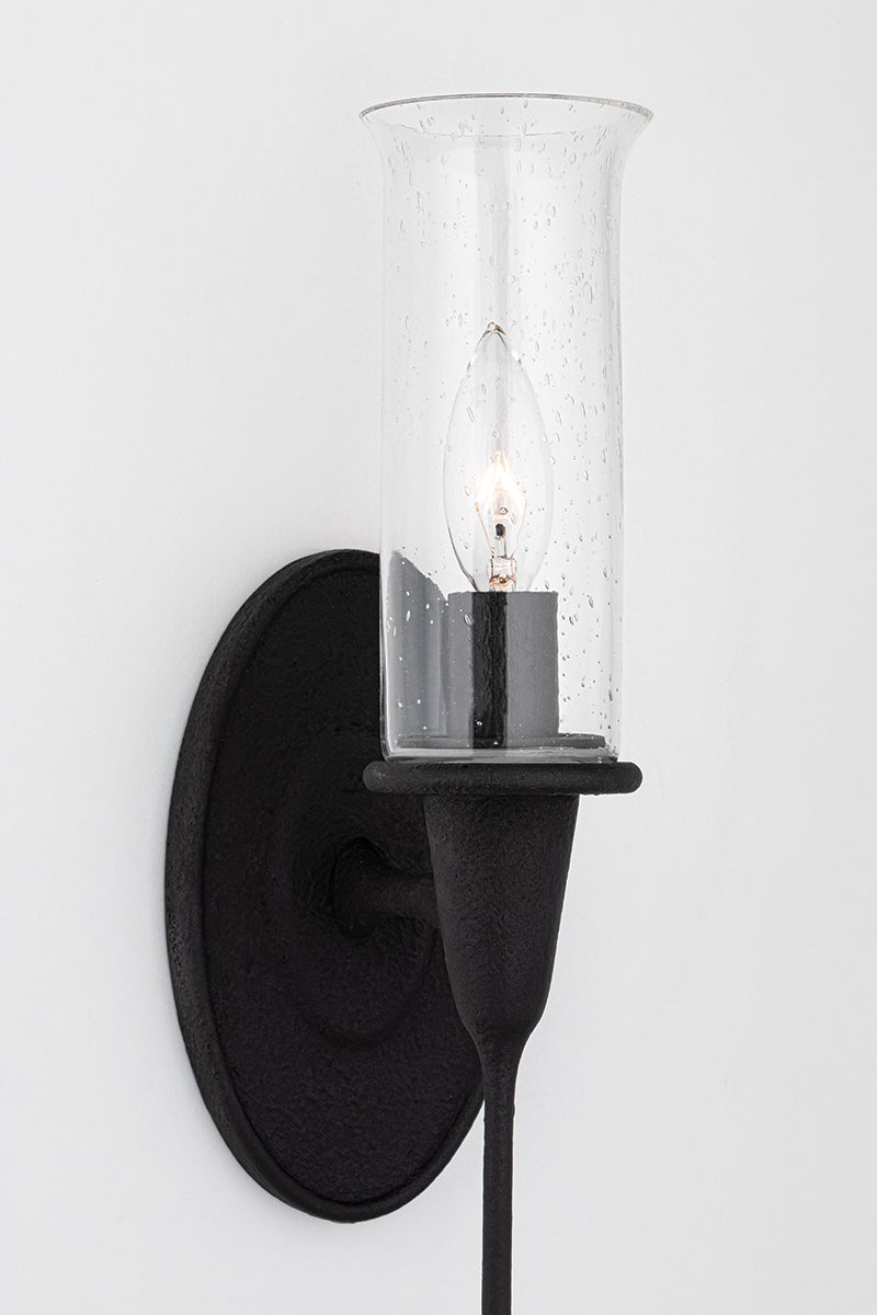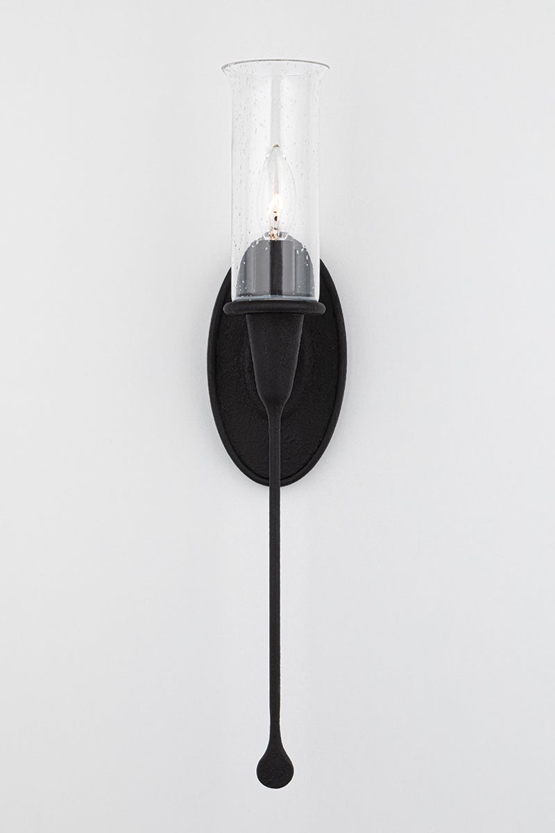 The Chisel Wall Sconce in Black Iron is a perfect blend of modern design and functionality, making it an ideal addition to any space. This elegant sconce features a single E12 candelabra base socket, accommodating a maximum wattage of 60W (bulb not included). It boasts a modest width of 4.00 inches and a height of 21.25 inches, with a 6.00-inch extension, providing versatile placement options. Additionally, its UL Damp rating ensures it is suitable for use in humid areas, offering both style and practicality for your lighting needs.