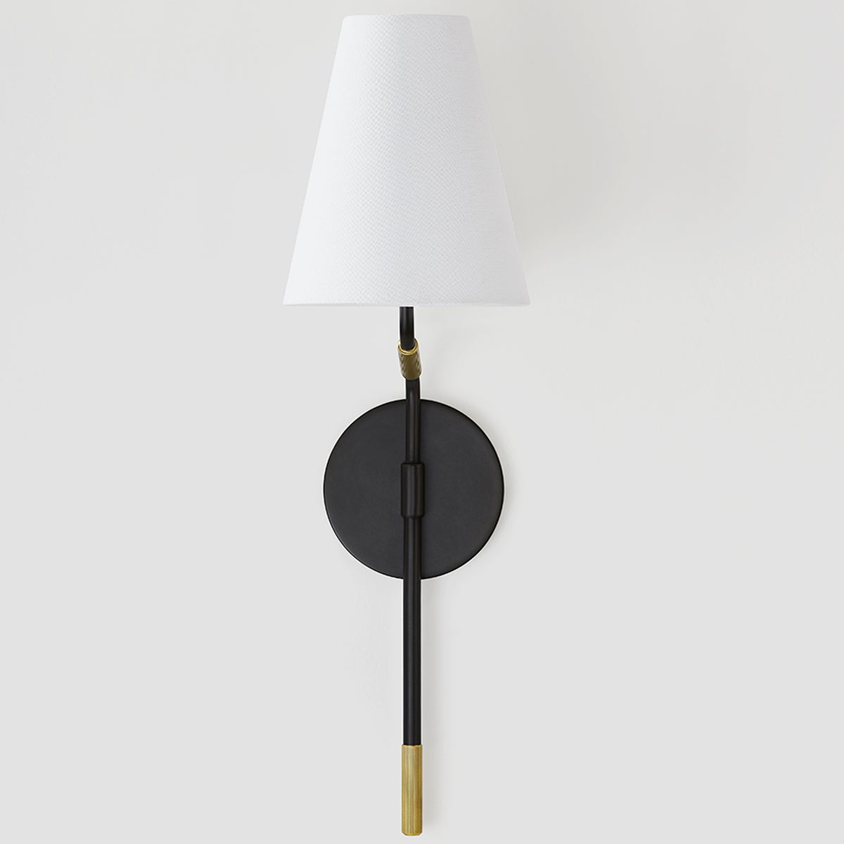 The Stanwyck Wall Sconce by Hudson Valley Lighting is a beautifully designed addition to any space, featuring an aged brass or distressed bronze finish to enhance its aesthetic appeal. This sconce measures 6.00 inches in diameter, stands 21.00 inches tall, and has a 9.00-inch extension, making it a striking focal point. It requires one E26 medium base bulb (not included) with a maximum wattage of 8W, which makes it energy-efficient. With a top-to-center measurement of 12.00 inches, it is suitable for various settings while being UL Damp rated, ensuring it can be safely used in areas prone to moisture.