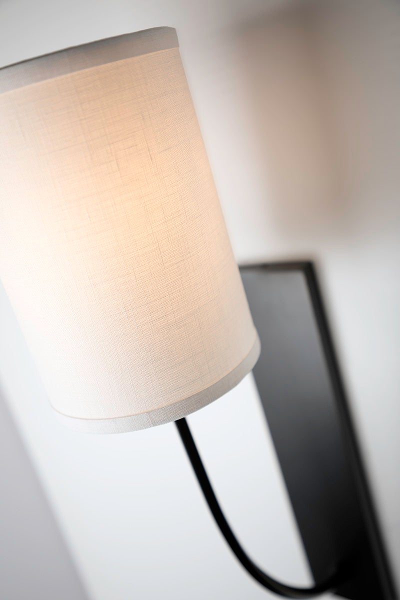 The Colton Wall Sconce by Hudson Valley Lighting offers a sophisticated touch with its aged brass finish and off-white linen shade. This stylish fixture measures 4.50 inches in diameter, stands 17.00 inches tall, and extends 6.75 inches from the wall. It features one E12 candelabra base socket, supporting a maximum wattage of 60W, and is compatible with B11 bulbs (not included). Rated for UL Damp locations, this versatile sconce is perfect for enhancing the ambiance in various living spaces, including bathrooms and covered outdoor areas.