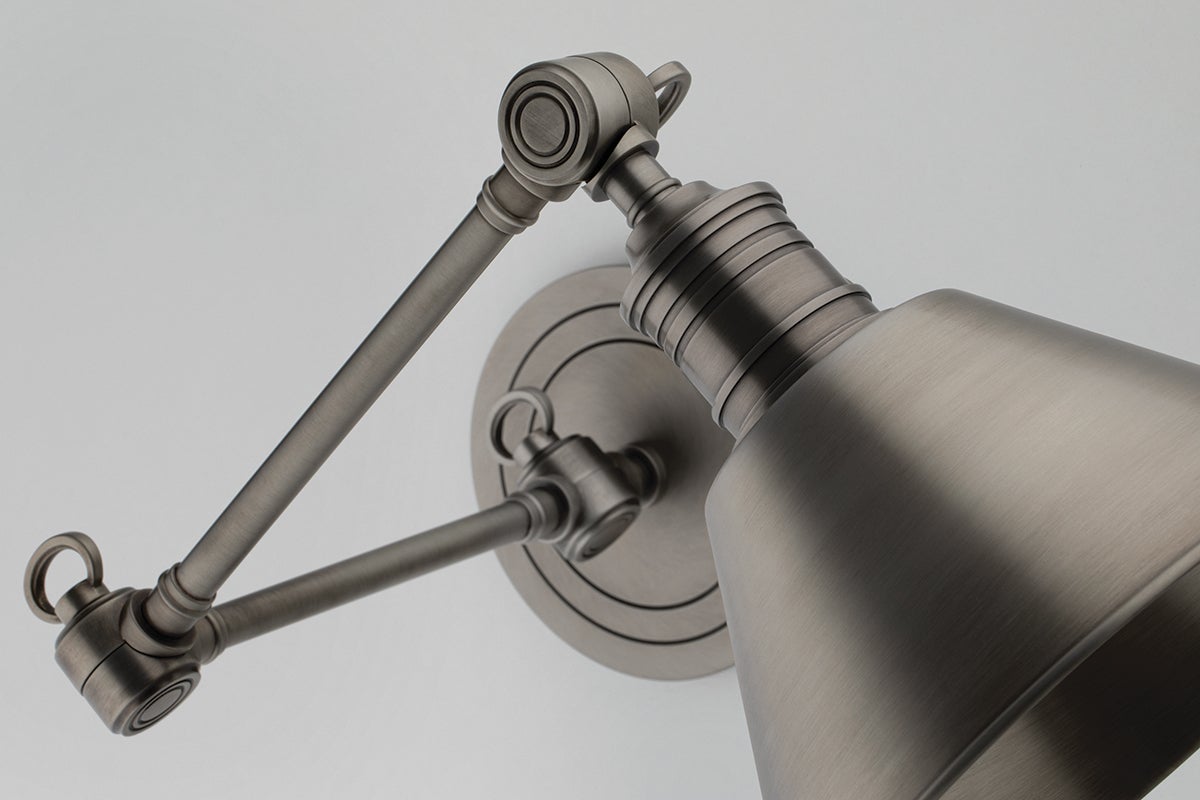 The Hudson Valley Lighting Garden City Wall Sconce features an elegant design with a shade finished in Aged Brass, adding a touch of sophistication to your decor. This sconce requires one E26 medium base bulb (not included), with a maximum wattage of 75W. It measures 8.00 inches in width and stands 23.00 inches tall, with a 33.25-inch extension and 13.75 inches from the top to the center. Designed for dry locations, it is both stylish and functional, making it perfect for living rooms, hallways, or entryways.
