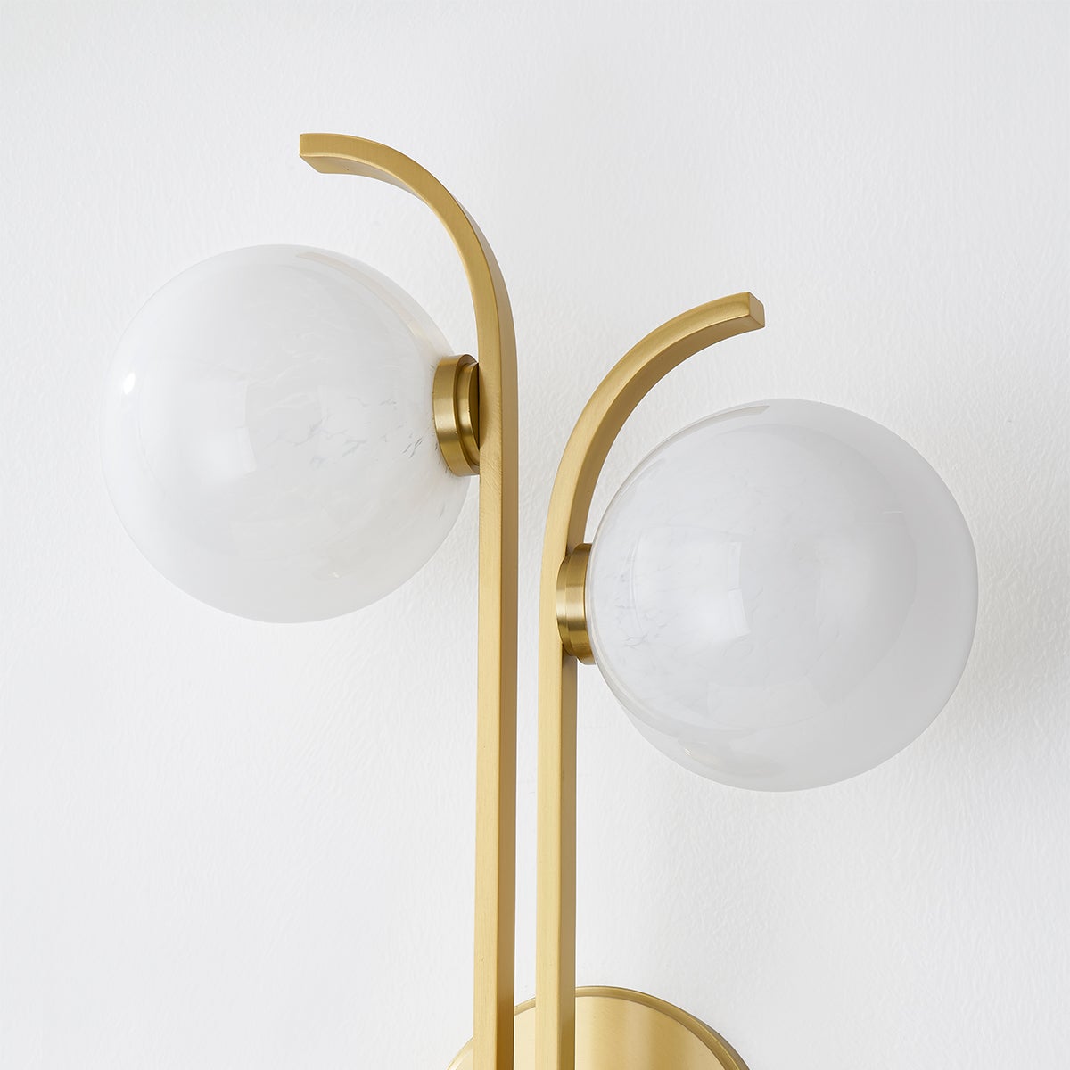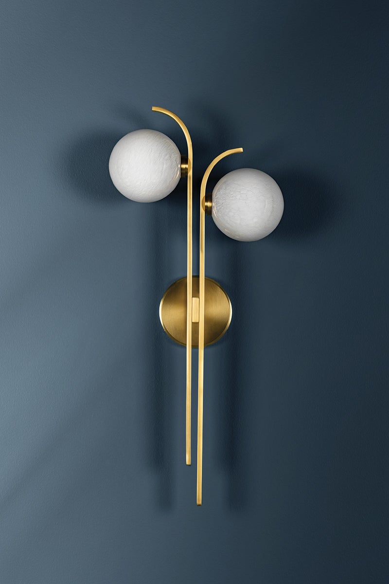 The Laval Wall Sconce by Hudson Valley Lighting is a stunning addition to any space, featuring a sophisticated Aged Brass finish. This fixture stands 25.25 inches tall and has a diameter of 10.50 inches, with an extension of 5.25 inches. Designed to hold two G9 LED bulbs (not included) with a wattage of 6.00 each, it offers a perfect blend of functionality and elegance. The glass shade enhances the light's diffusion, while its ETL Damp rating makes it suitable for use in humid environments, adding versatility to your lighting options.