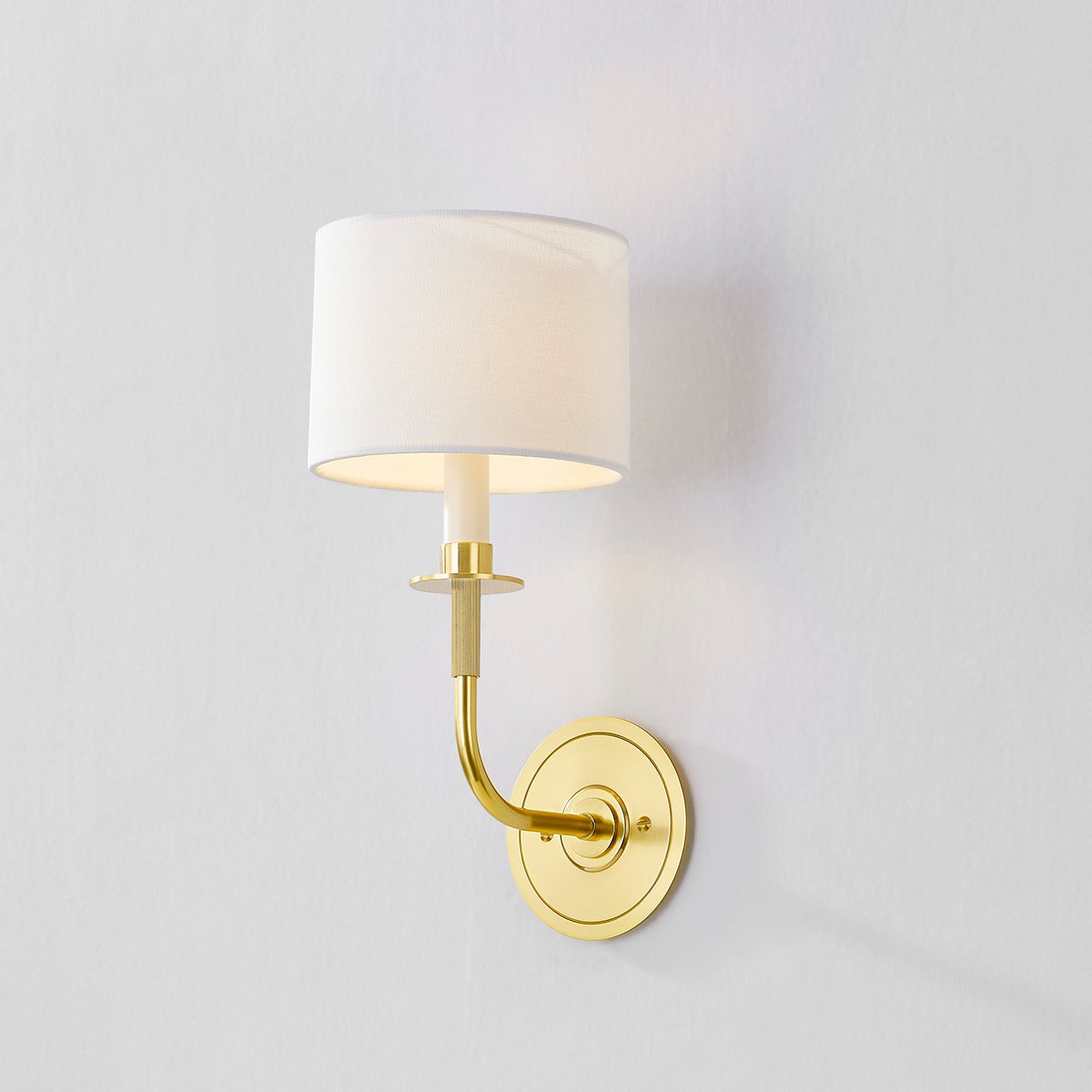 The Paramus Wall Sconce from Hudson Valley Lighting offers a blend of modern elegance and functional design. This stunning fixture features a height of 14.50 inches, a width of 7.00 inches, and an 8.50-inch extension, making it ideal for accent lighting. It is equipped with a single E12 candelabra base socket, supporting a recommended B11 bulb with a maximum wattage of 8W (bulb not included). The sconce boasts a stylish linen shade and is available in two finish options: Aged Brass and Aged Old Bronze. Additionally, it is UL Damp rated, ensuring its suitability for humid environments like bathrooms.