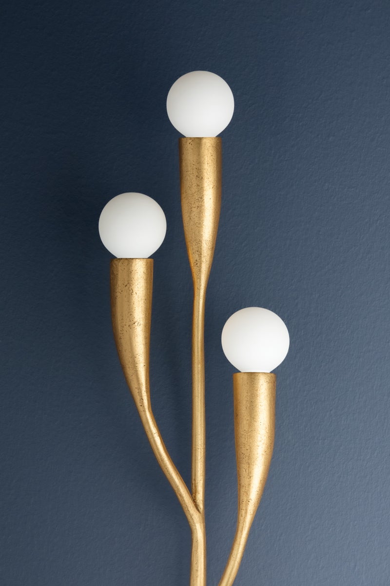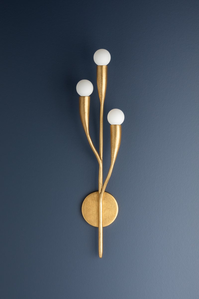 The Labra Wall Sconce by Hudson Valley Lighting offers a sophisticated blend of functionality and style, making it ideal for enhancing any space. This sconce features three E12 candelabra base sockets (bulbs not included), each with a maximum wattage of 60W. It has a width of 5.75 inches, an impressive height of 24.50 inches, and an extension of 4.50 inches. With a top-to-center height of 19.00 inches, it is designed to fit seamlessly into various decor styles. The sconce is available in elegant finish options, including Aged Iron (AI), Vintage Gold Leaf (VGL), and White Plaster (WP), and is UL Damp rated, making it suitable for use in humid environments.