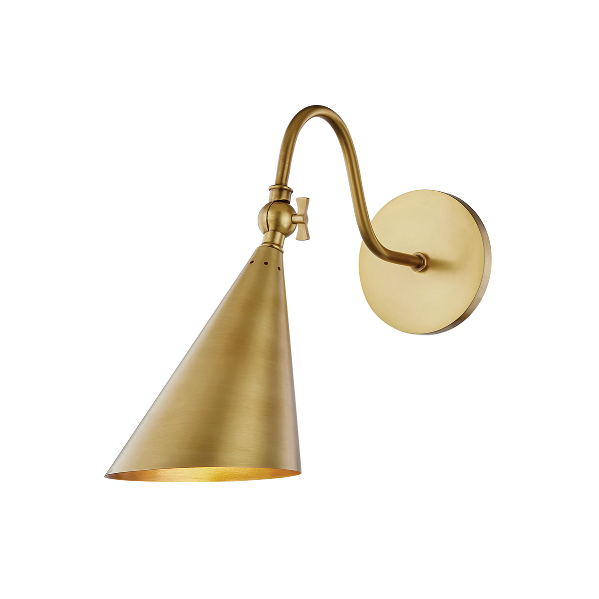 The Lupe Wall Sconce from Mitzi is a sophisticated lighting option perfect for modern interiors. This sconce features an Aged Brass finish and requires one E12 candelabra base bulb (sold separately), with a maximum wattage of 40W. With dimensions of 6.25 inches in width and 12 inches in height, it extends 14 inches from the wall. The fixture is UL Damp rated, making it suitable for use in bathrooms or other moisture-prone areas, while its elegant design adds a touch of style to any space.