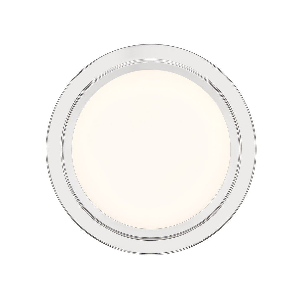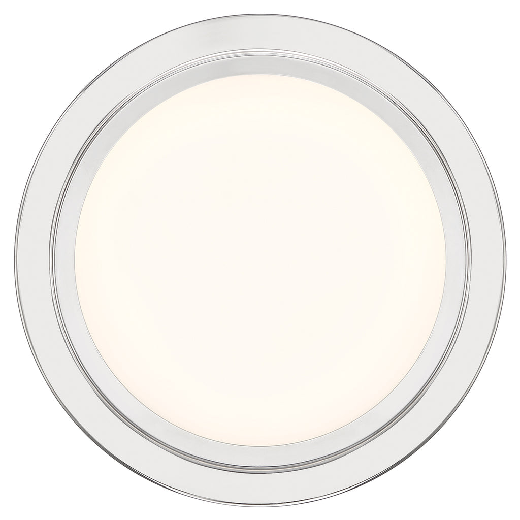 The contemporary Kendal collection makes a statement with its graphic uniform pattern. Its metal frame surrounds white glass in this elegant drum-shaped ceiling mount. The high contrast of Vibrant Gold, Black Forged, or Polished Nickel against white glass is a great way to add a touch of drama to a room.