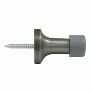 1 1/2 Inch Solid Brass Baseboard Door Bumper (Antique Nickel Finish) - measures 1 1/2 inches long. This style of door stop provides protection for the door by preventing it from banging against a wall causing damage to drywall or plaster and paint. This door stop is available in many designer finishes and comes complete with the mounting hardware.