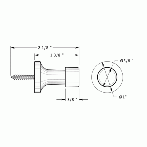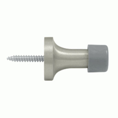 1 1/2 Inch Solid Brass Baseboard Door Bumper (Brushed Nickel Finish) - measures 1 1/2 inches long. This style of door stop provides protection for the door by preventing it from banging against a wall causing damage to drywall or plaster and paint. This door stop is available in many designer finishes and comes complete with the mounting hardware.