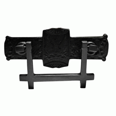 This piece measures 1 1/2 inches tall by 3 3/4 inches wide with a projection of 1 5/8 inches and a mounting distance of 2 1/2 inches. It comes complete with all mounting hardware and is available in a variety of finishes, including polished brass, antique brass and black bronze.