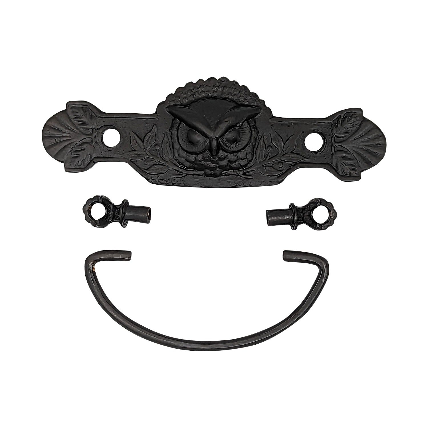 This beautiful bail pull will add a touch of whimsy and class with its stately Art Deco or Victorian design. This piece measures 5 inches at its widest and 1 5/8 inches tall at its base. It has a center-to-center mounting of 3.00 inches and a projection of 2 inches. It's available in several different finishes and comes complete with mounting hardware. Each of these pulls are hand made.