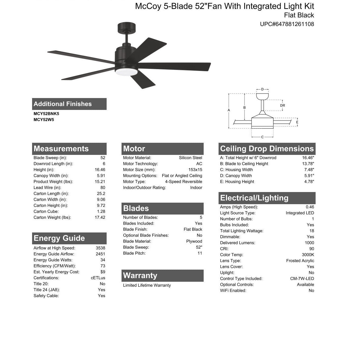 52" McCoy 5-Blade in Flat Black w/ Flat Black Blades