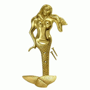 8 1/2 Inch Solid Brass Mermaid Hook (Polished Brass Finish) - measures 8 3/8 inches tall and approximately 4 inches wide with a projection of 2 1/2 inches. Comes complete with the mounting hardware.