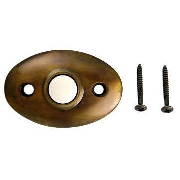 2 3/8 Inch Solid Brass Door Bell Button (Antique Brass Finish) - measures 2 3/8 inch tall and 1 5/8 inch wide. Comes complete with matching hardware screws. Works with two contact leads and standard doorbell circuits.