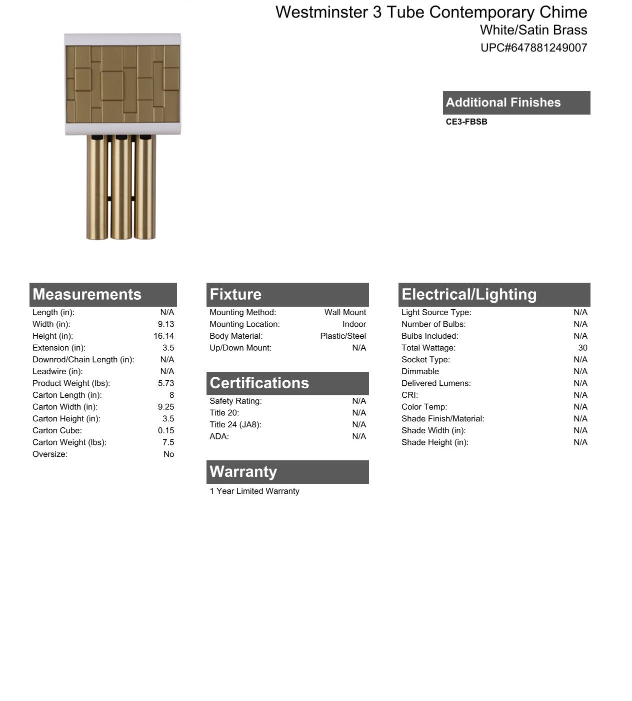 Strong architectural details combine with contemporary styling to create our Contemporary Westminster Chime offered in three finishes with option of 4 or 8 note front door chime and single back door chime with adjustable volume.