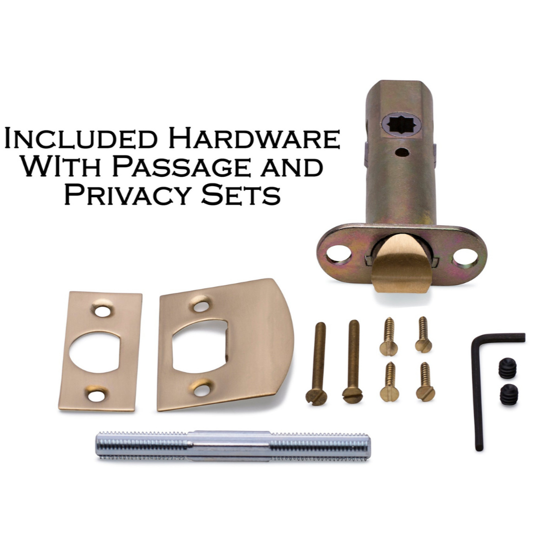 The Passage and Privacy sets each come complete with interconnected rosettes and all necessary hardware for convenient installation of doorknob sets. For decorative purposes, our Single and Double Dummy sets feature surface-mounted rosettes. The standard backset provided is 2 3/8 inches, with the option to substitute it with a 2 3/4 inch backset at no additional if requested at time of purchase.