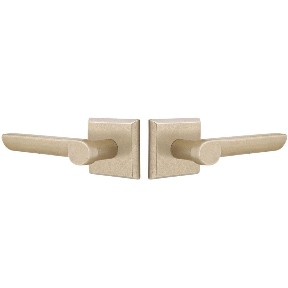This lever door knob is constructed from solid brass and measures 5 1/8 inches overall with a 2 7/16 inch projection. Includes the two levers and door rosettes. Functional sets also include the lever latch, face plate and strike plate. This set is made for modern doors and it fits any door thickness between 1 3/8 inch to 2 1/4 inches thick. Functional sets come with a 2 3/8 inch back set latch - and a 2 3/4 inch back set may be requested at no additional charge. This door lever set comes complete with mounting hardware. Handing is required for leversets. The average lead time for this lever is approximately 3 to 5 business days.