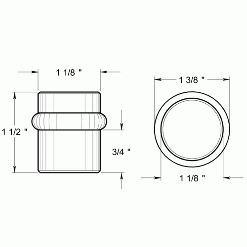 Floor Mounted Bumper in Solid Brass - a solid brass universal round shape modern floor mounted bumper (Flat Black Finish) - this measures 1 1/2 inch tall and 1 1/8 inch in diameter (the rubber extends the diameter to 1 3/8 inch). It also comes complete with the mounting screws.