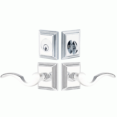 Emtek Solid Brass Cortina Door Lever Deadbolt with Wilshire Rosette (Polished Chrome Finish) - This deadbolt door lever comes complete with all mounting hardware. It features a Polished Chrome finish and would look perfect in any modern home. The deadbolt mounting distance features an adjustable height. This set comes with a 2 3/8 inch back set but you may request a 2 3/4 inch back set for the latch and deadbolt at the time of ordering. It can also be ordered separately for an additional charge. This set comes complete with all of the mounting hardware.