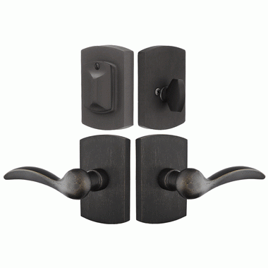Emtek Solid Brass Durango Door Lever Deadbolt with #4 Rosette (Medium Bronze Finish) - This deadbolt door lever comes complete with all mounting hardware. It features a Medium Bronze finish and would look perfect in any modern home. The deadbolt mounting distance features an adjustable height. This set comes with a 2 3/8 inch back set but you may request a 2 3/4 inch back set for the latch and deadbolt at the time of ordering. It can also be ordered separately for an additional charge. This set comes complete with all of the mounting hardware.