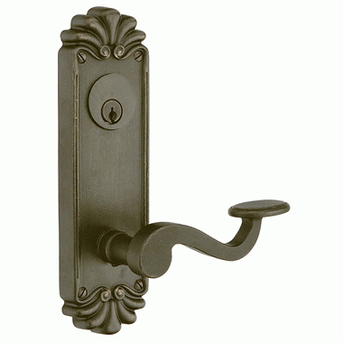 Tuscany #16 Keyed Style Passage Entryway Set (Medium Bronze Finish) - This outstanding passage door entryway features a rustic, yet elegant construction, complete with a matte black finish. Measures 2 1/2 inches wide by 8 1/4 inches tall. Includes a 3 5/8 inch center to center hole spacing with two standard 2 1/8 inch door preps. Sold as a complete set, with lever, latch and strike plate. Standard latch is for 2 3/8 inch backset, must specify if a 2 3/4 inch backset is required.